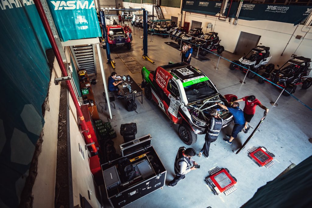 The South Grand Stand support pits area at Yas Marina Circuit was alive with activity today as the cars, buggies, bikes and quads readying for the event underwent mechanical scrutineering ahead of a 1,948km passage through the spectacular Al Dhafrah region.